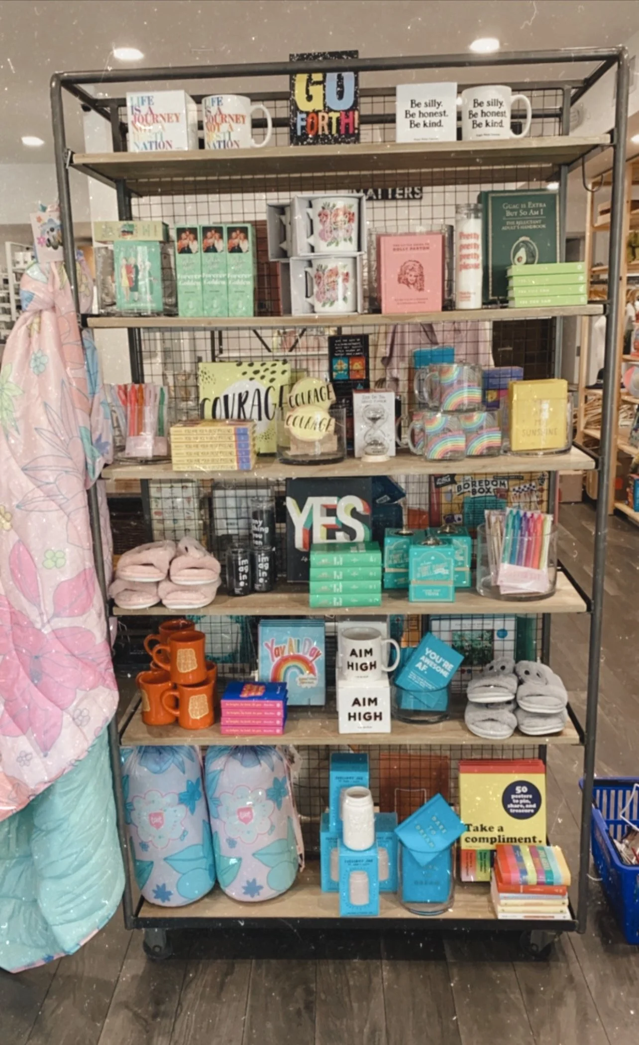 As promised, I am covering my biggest and best lessons from my time at Anthropologie. We are starting at the beginning with binning. Binning is one of the tricks that can do several things at once. It gives value to inexpensive items, contains multiple loose items, and creates cohesiveness. It also helps break up the run-on sentence of lined up or stacked up products on shelving.